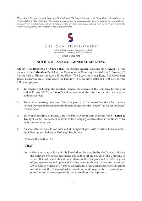 Notice Of Annual General Meeting Lai Sun Group